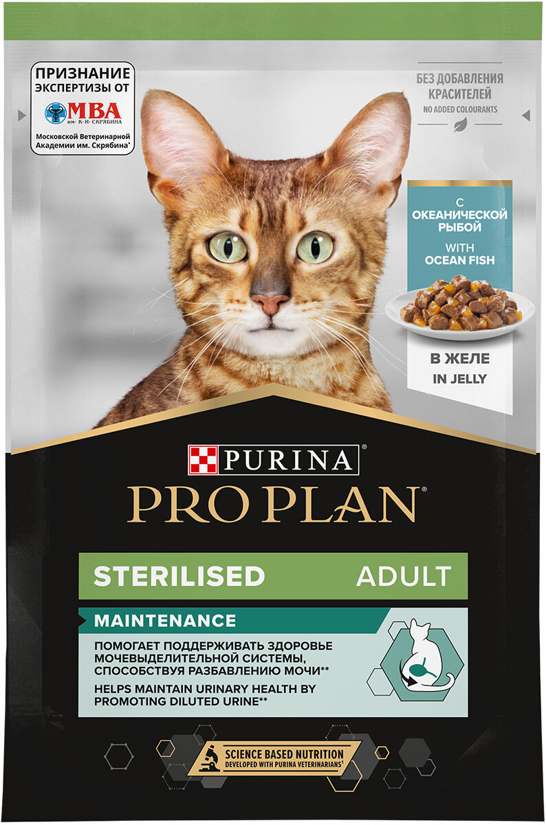 PRO PLAN CAT ADULT STERILISED OCEAN FISH для взрослых кастрированных котов и стерилизованных кошек с рыбой в желе (85 гр х 26 шт) информация: