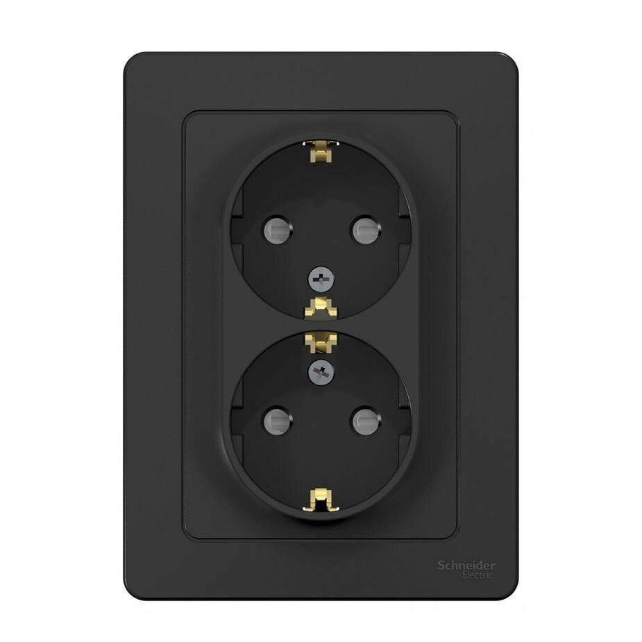 Розетка двойная 2 м с заземлением со шторками Blanca антрацит встроенный монтаж (Schneider Electric), арт. BLNRS001126 301 ₽