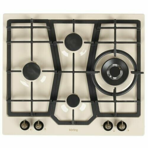 Варочная панель Korting 60см в ретро-дизайне, 4 высокоэффективные конфорки, WOK- сверхмощная конфорка, автоматический электроподжиг, газ-контроль каждой конфорки, передние переключатели, чугунные решетки, адаптер для WOK-конфорки, цвет - слоновая кость, ц