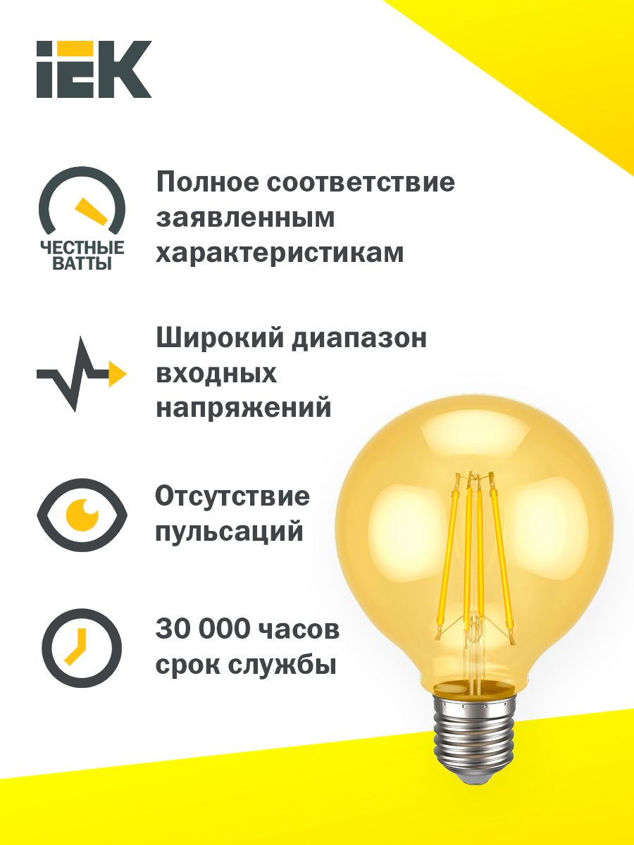 Отзывы на Лампа LED G95 золото 8Вт 230В 2700К E27 серия 360°, IEK LLF-G95-8-230-30-E27-CLG (1 шт.)