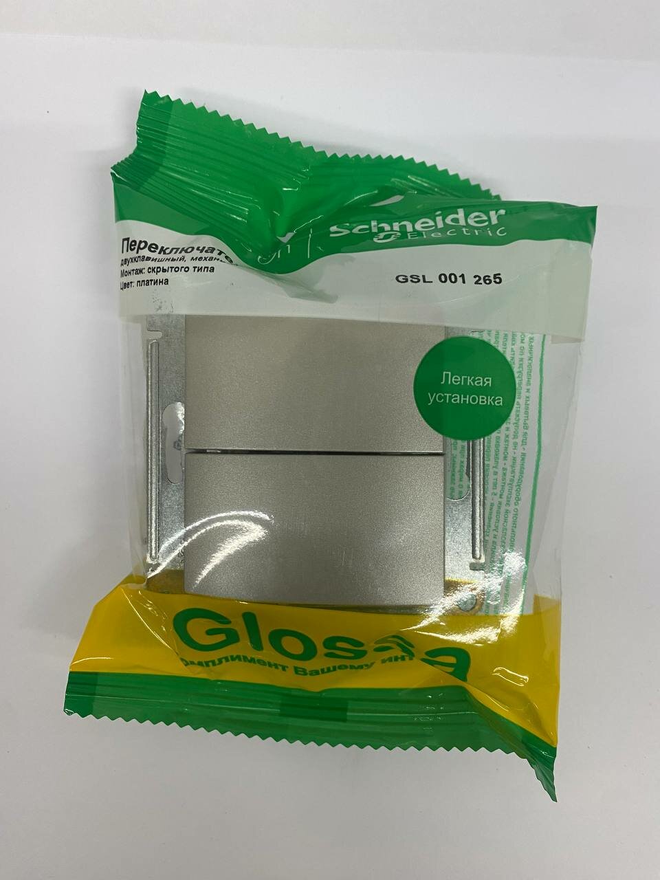 Переключатель Glossa двухклавишный выключатель проходной платина 10А Schneider Electric, GSL001265 632 ₽