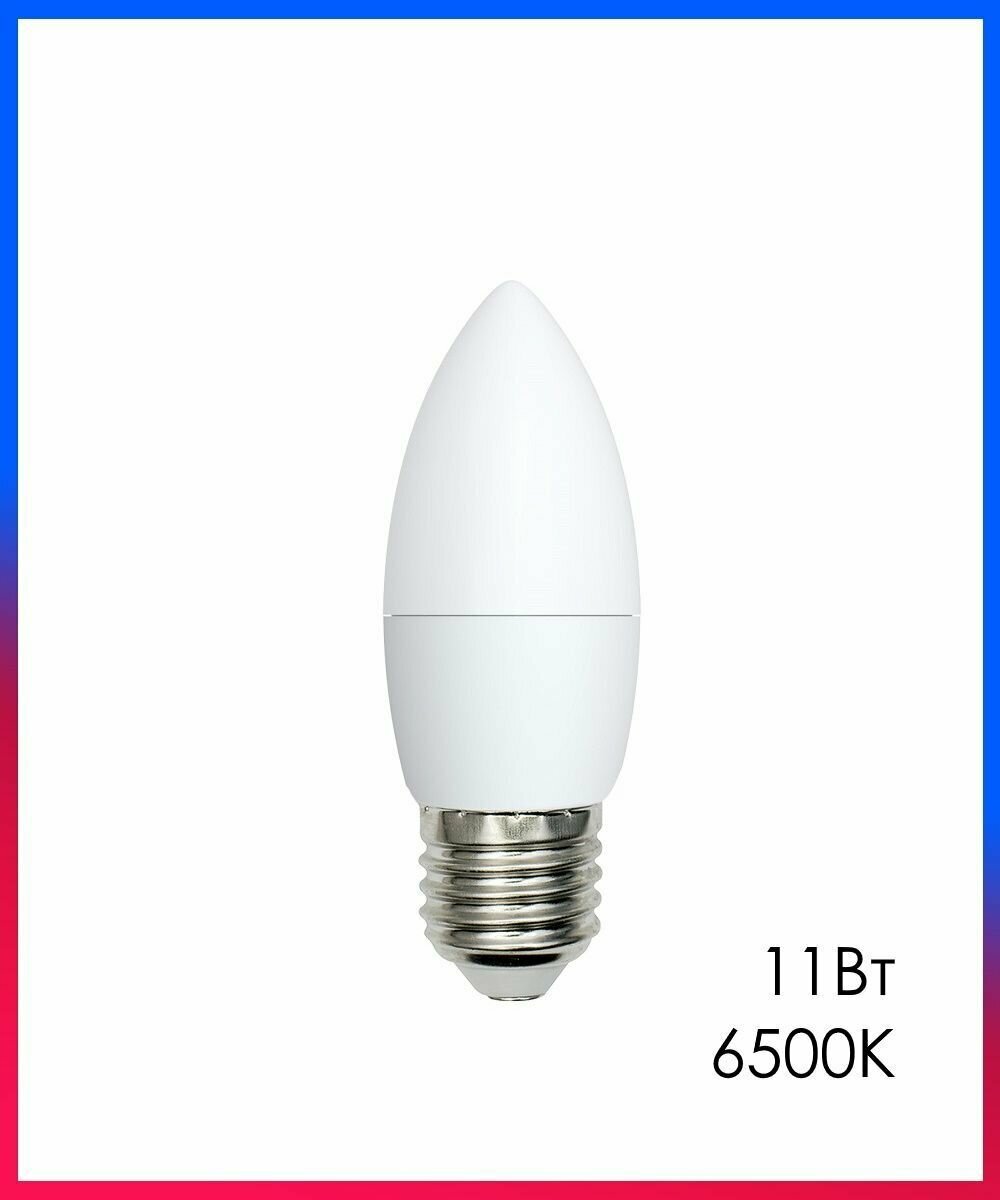 Отзывы на Светодиодная лампа LED Лампочка Е27 Свеча 11Вт 6500К D37х100мм Матовая колба 900Лм