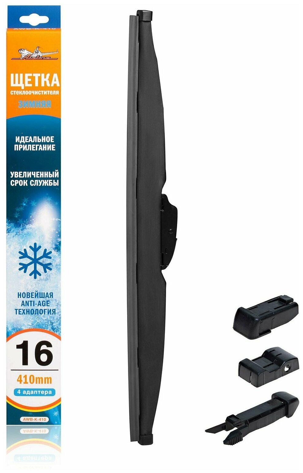 Щетка стеклоочистителя 410 мм (16") зимняя, 4 адаптера (AWB-W-410)