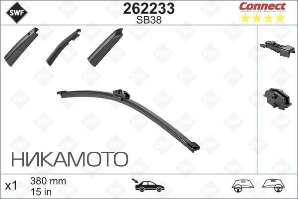 SWF / 262233 / Щетка стеклоочистителя задняя Connect бескаркасная 380/15` (универсальные адаптеры )