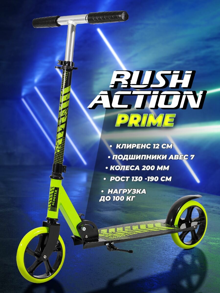 Самокат двухколёсный Rush Action YTA-660 Prime Green, 200 мм . информация: