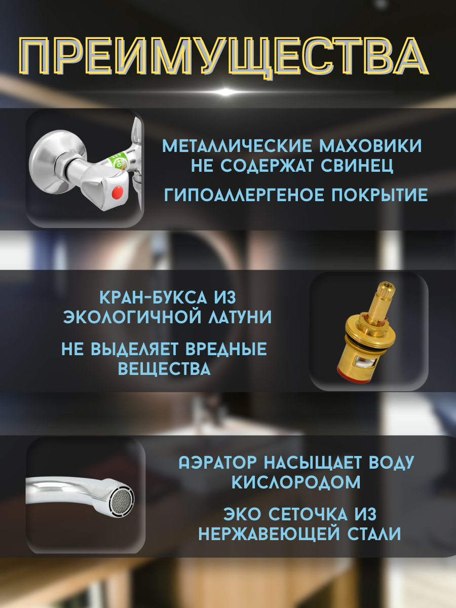 | Особенности | S-образные эксцентрики / аэратор / держатель душевой лейки |