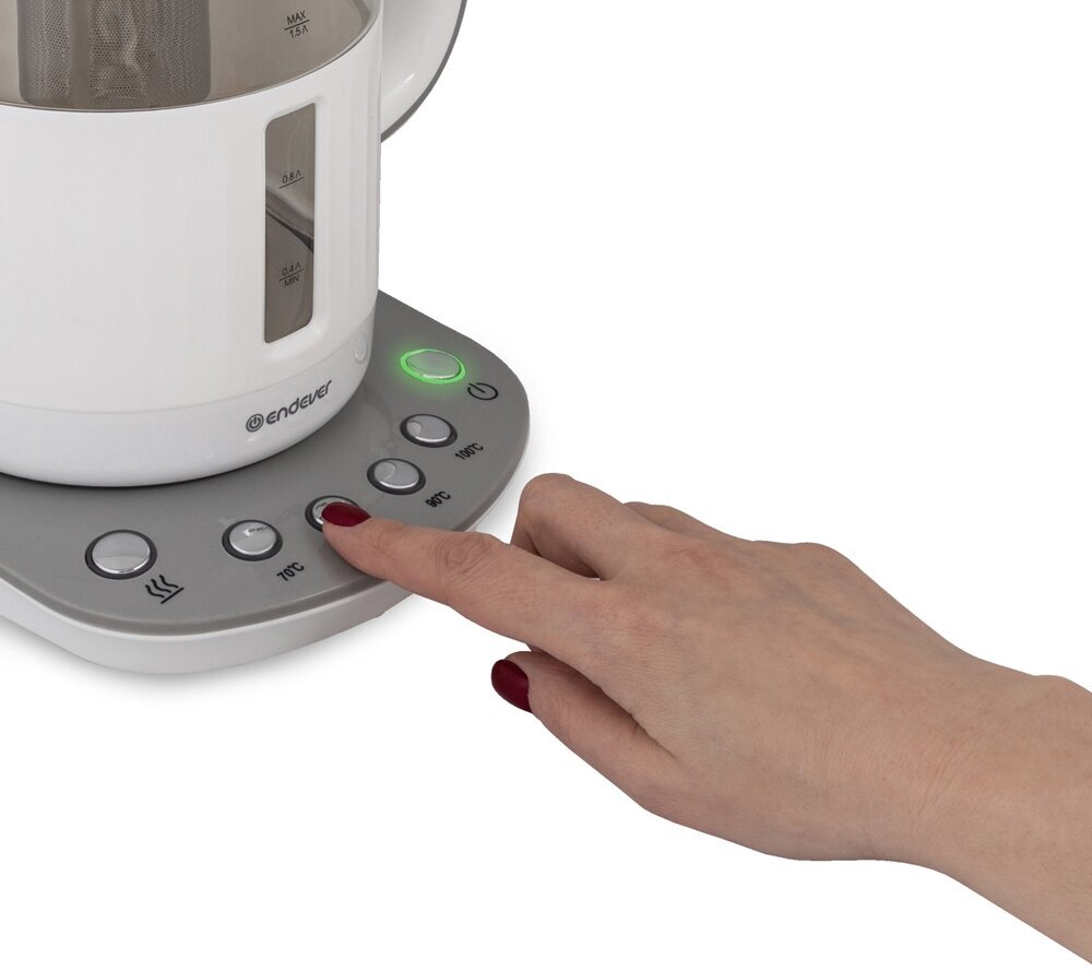 Чайник электрический стеклянный Endever KR-364G / 1,5л / 2200 Вт / с сеткой для заваривания чая