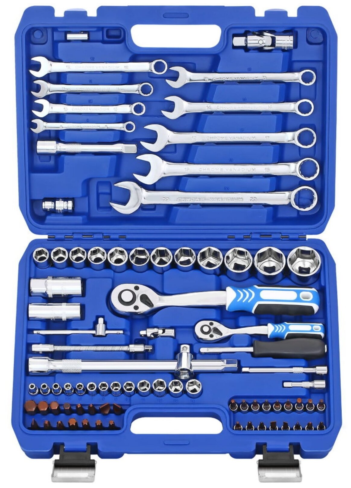 Набор инструментов 82 предмета 1/4" 1/2" трещотка 72 зуба GOODKING B-10082 торцевые головки, биты, комбинированный ключ, трещеточный ключ