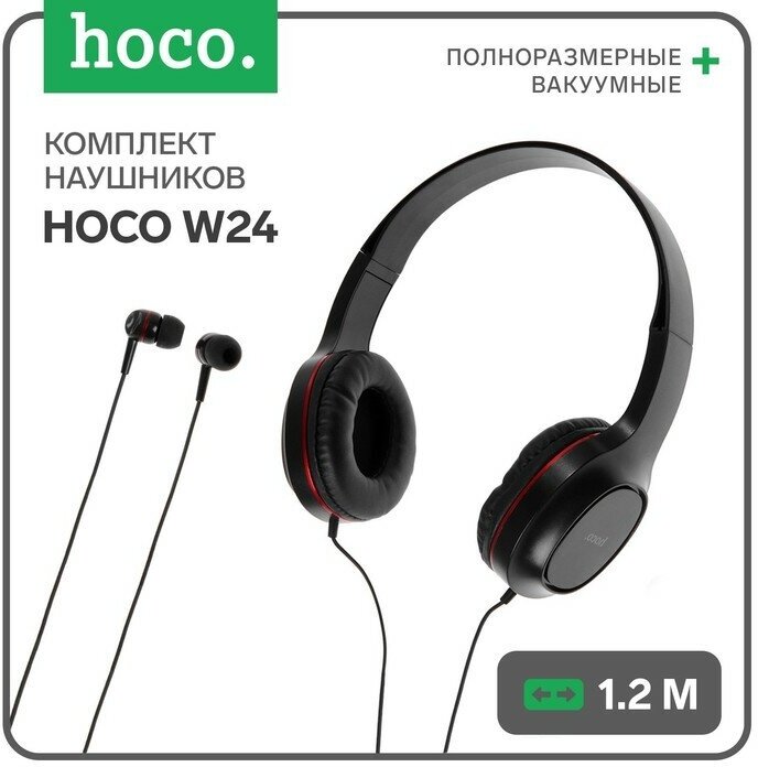 Комплект наушники с микрофоном Hoco W24 полноразмерные и наушники вкладыши, черно-красные