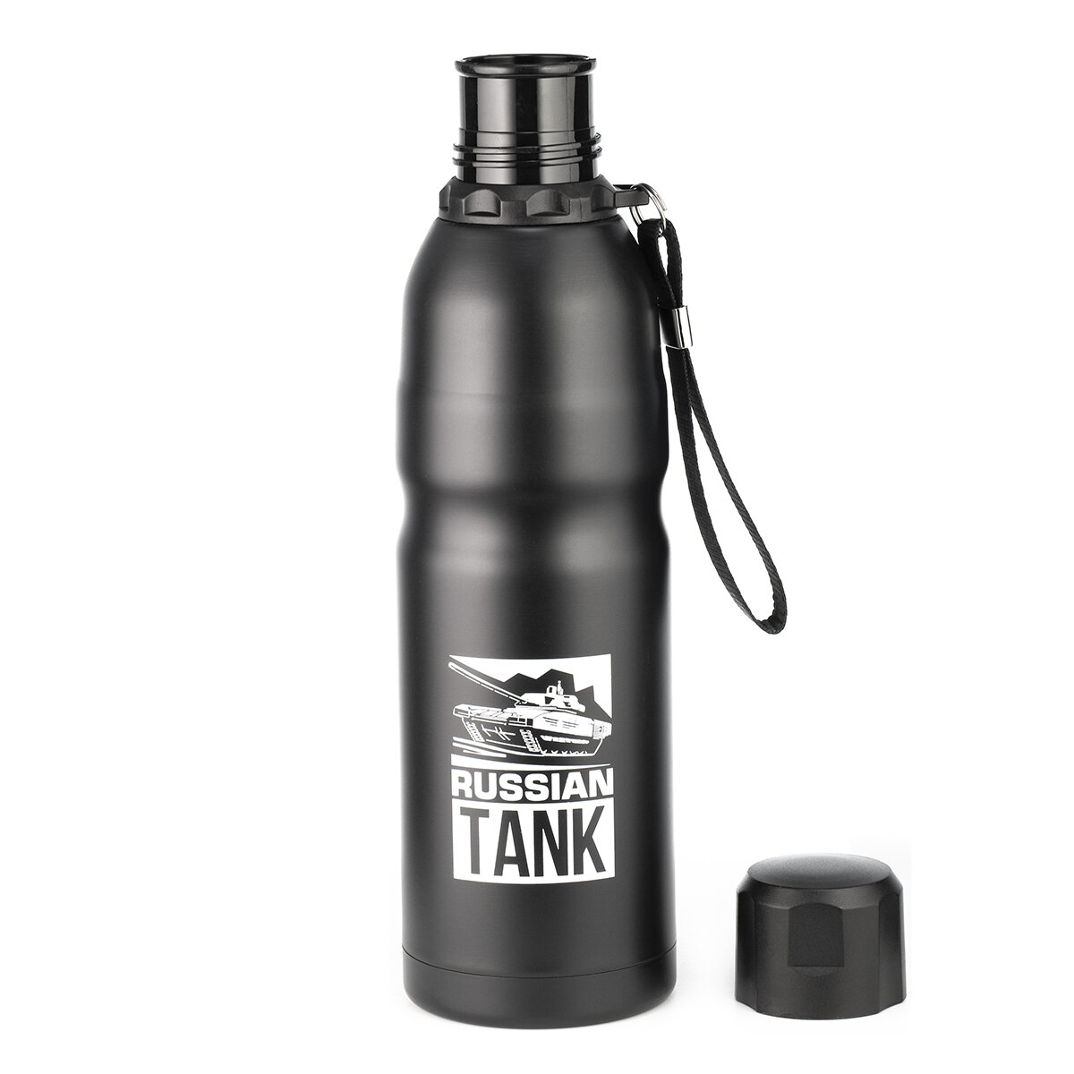 LR04-21 термос LARA (черный) 500мл, матовый, ремешок для переноски