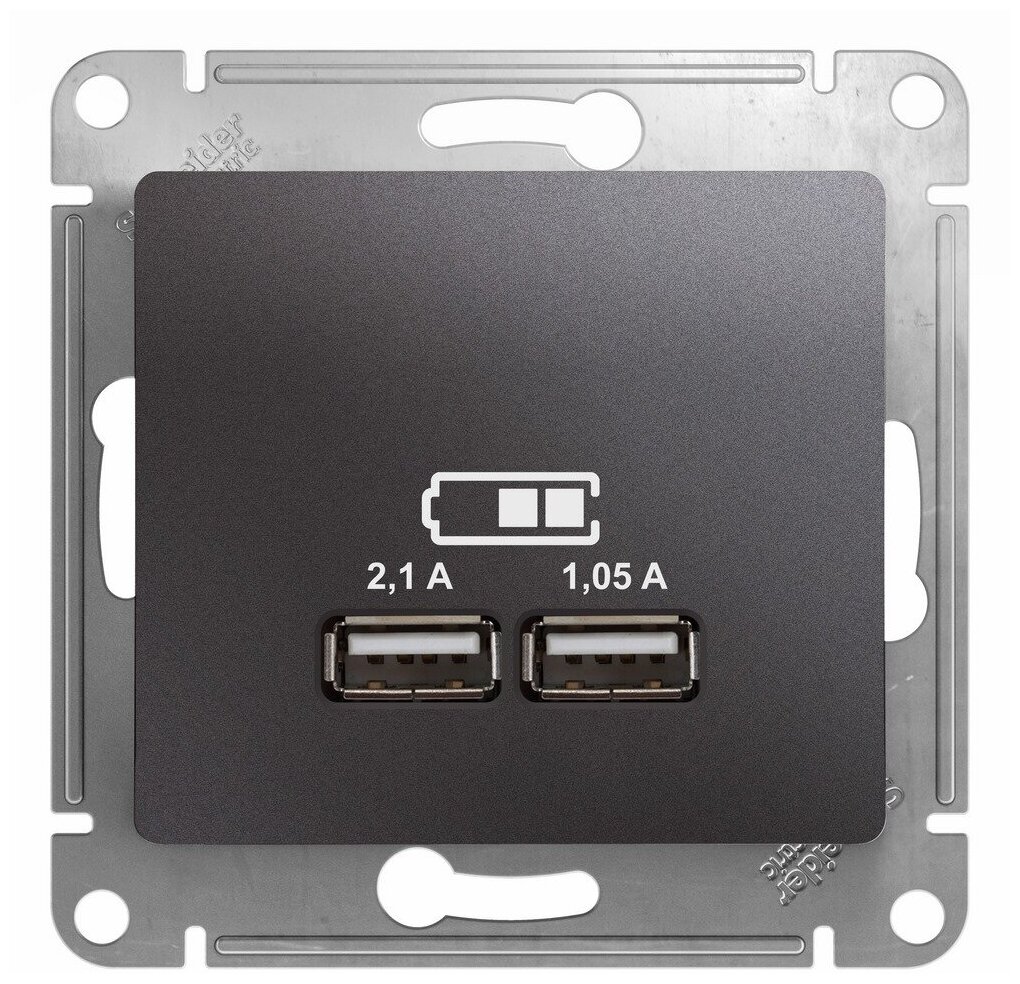 Розетка GLOSSA USB 5В/2100мА 2х5В/1050мА механизм графит () SCHNEIDER ELECTRIC GSL001333 (1 шт.)