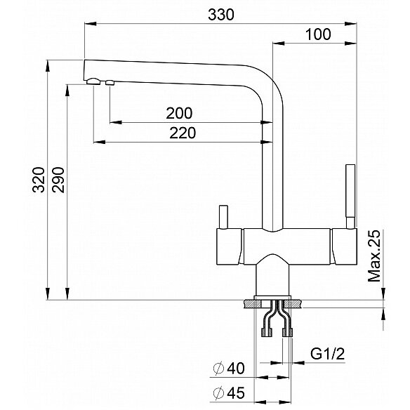 | Длина излива | 220 мм |