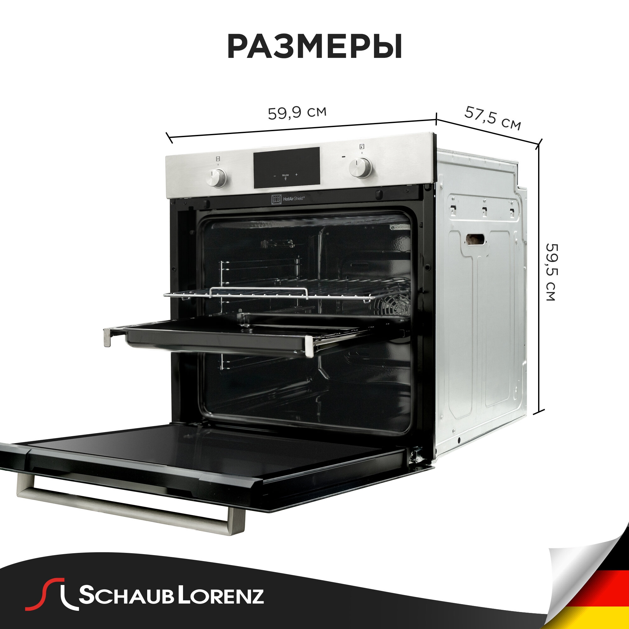 Электрический духовой шкаф встраиваемый Schaub Lorenz SLB EE6933, нержавеющая сталь, 78 л, конвекция, гриль, пицца. 48 490 ₽