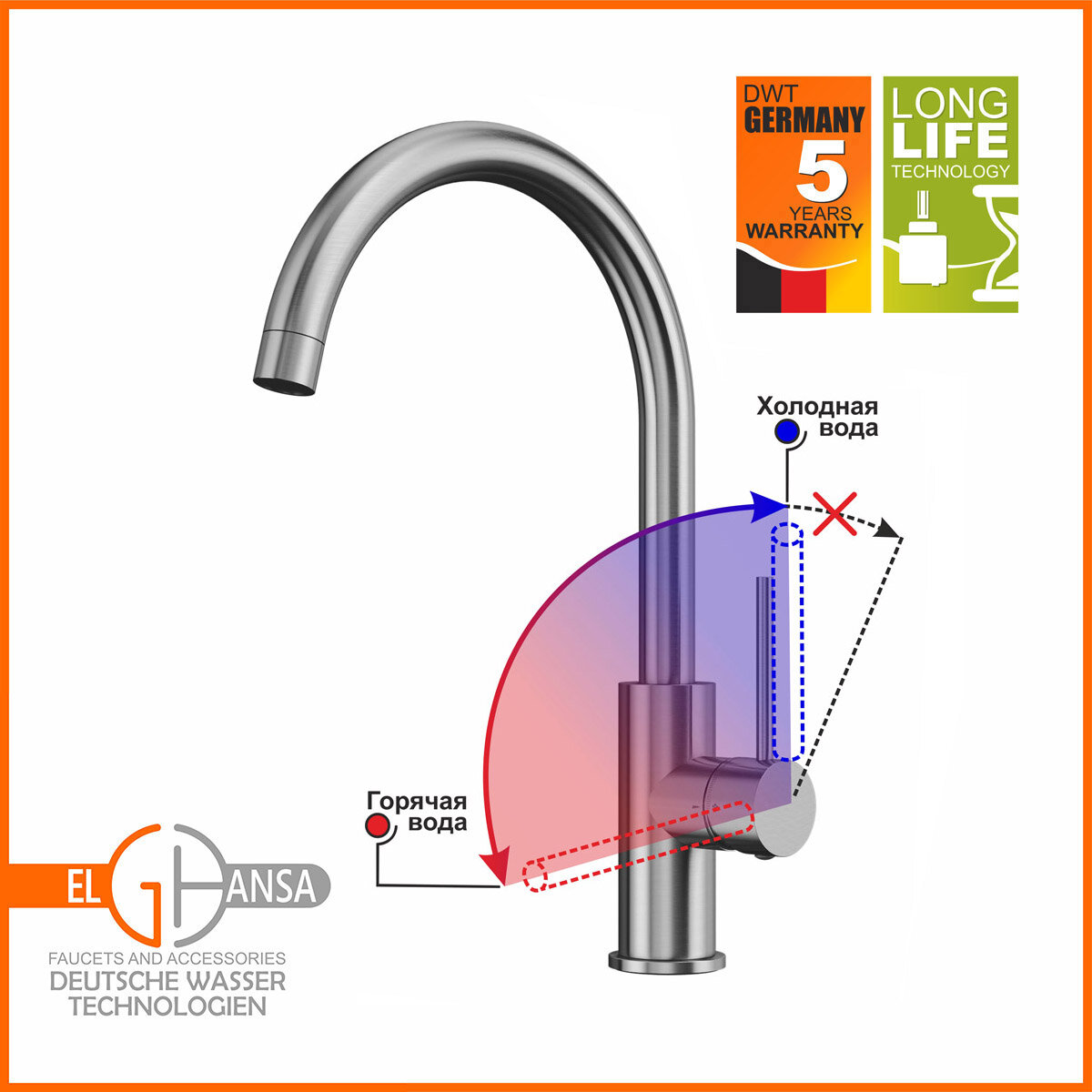 Смеситель для кухонной мойки Elghansa Kitchen 56B1116-Steel информация: