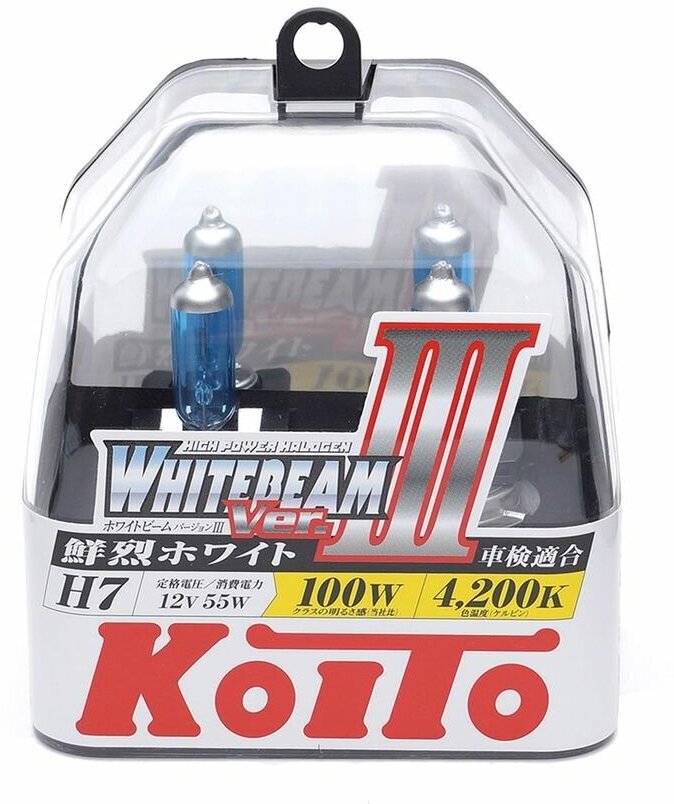 Лампа автомобильная галогенная KOITO Whitebeam III H7 P0755W 4200K 12V 55W (100W) P43t-38 4200K 2 шт.