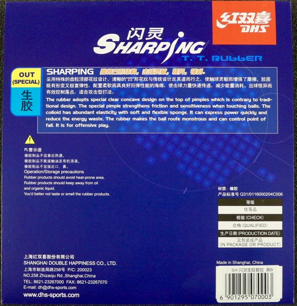 Отзывы на Накладка для настольного тенниса DHS SHARPING (средние шипы) (цвет: черный, 2.2 мм)