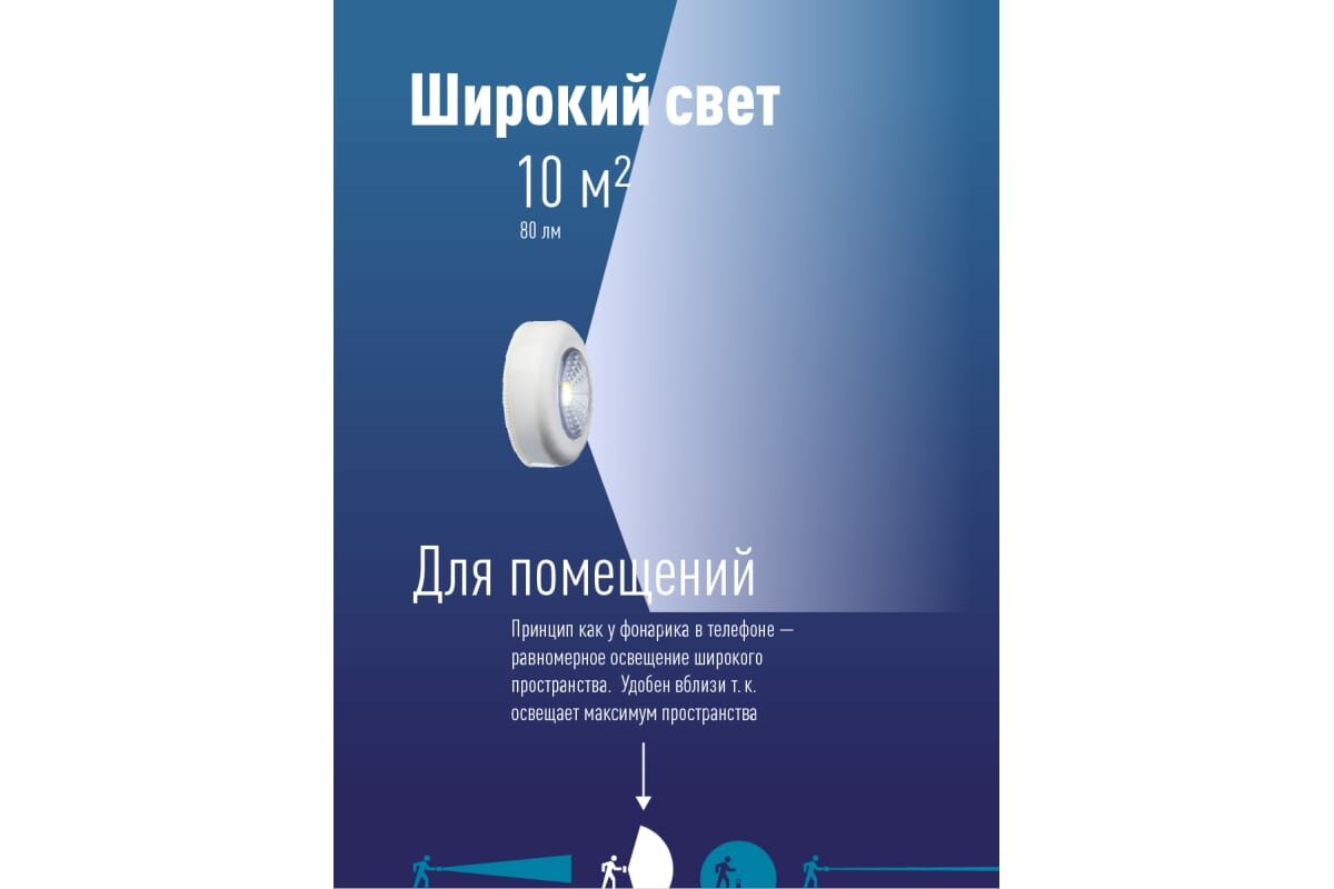 Отзывы на Фонарь подсветка 1ВтCOBLED 3xAAA корпус ABS-пластик самоклеящийся (уп.3шт) KOC304B космос