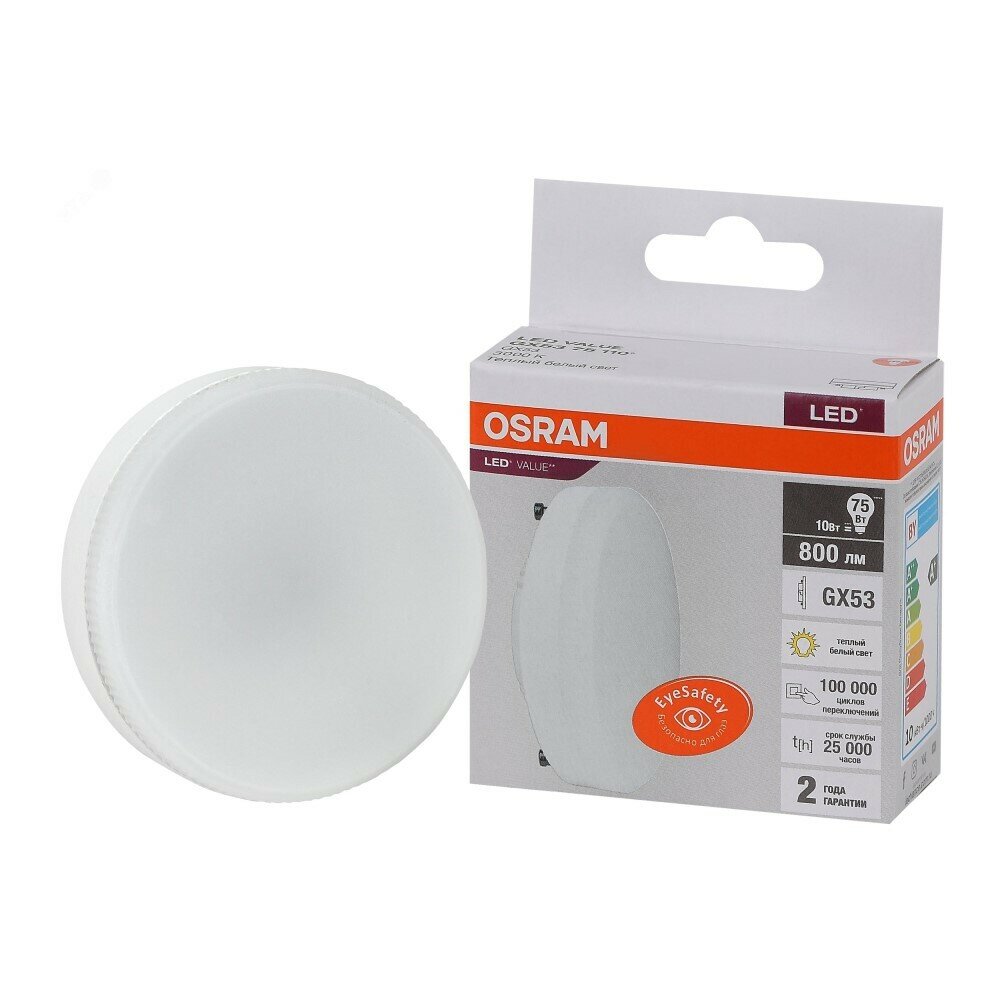 Светодиодная лампа OSRAM LED Value GX GX53 800лм 10Вт замена 75Вт 3000К теплый белый свет 4058075582064