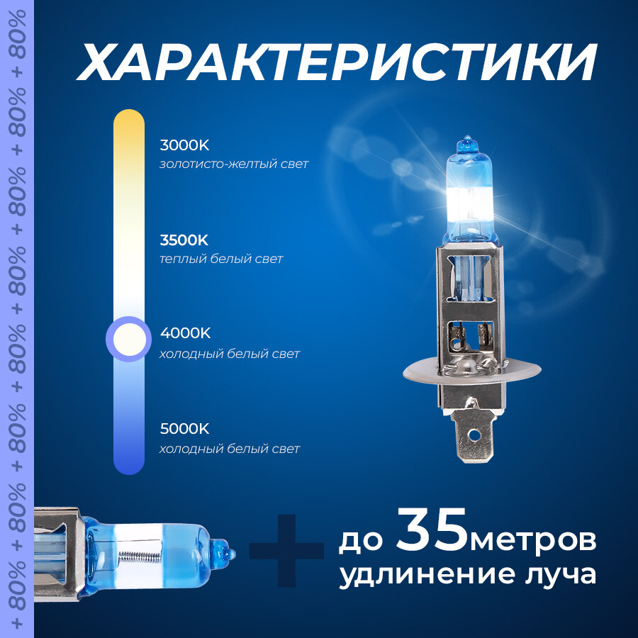 Автолампа Kraft Pro + 80% More Light H1 12V 55W (P14,5S) /T=4000K Kraft арт. KT 700106