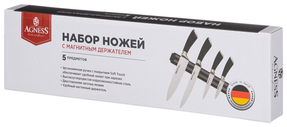 Набор ножей agness 5 пр.с магнитным держателем нерж.сталь KSG-911-047