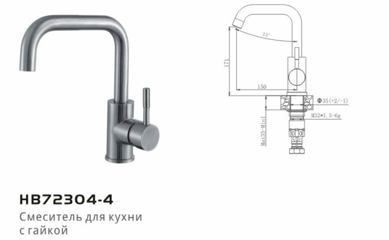 Смеситель для кухни Haiba HB72304-4 с гайкой, сталь информация: