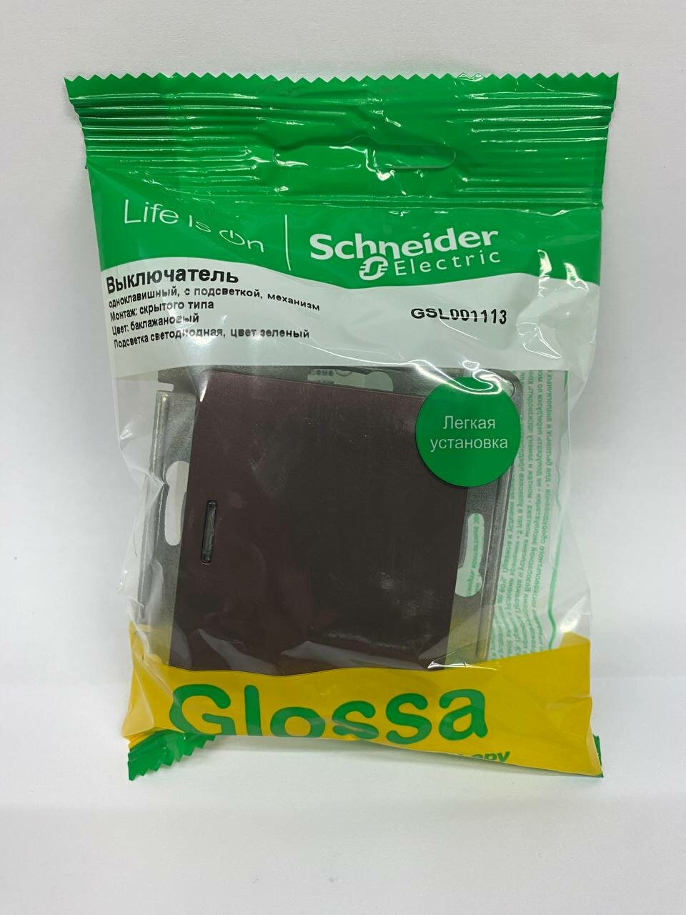 1-клавишный выключатель с подсветкой,GLOSSA, механизм, баклажановый, SCHNEIDER ELECTRIC GSL001113 (1 шт.) информация:
