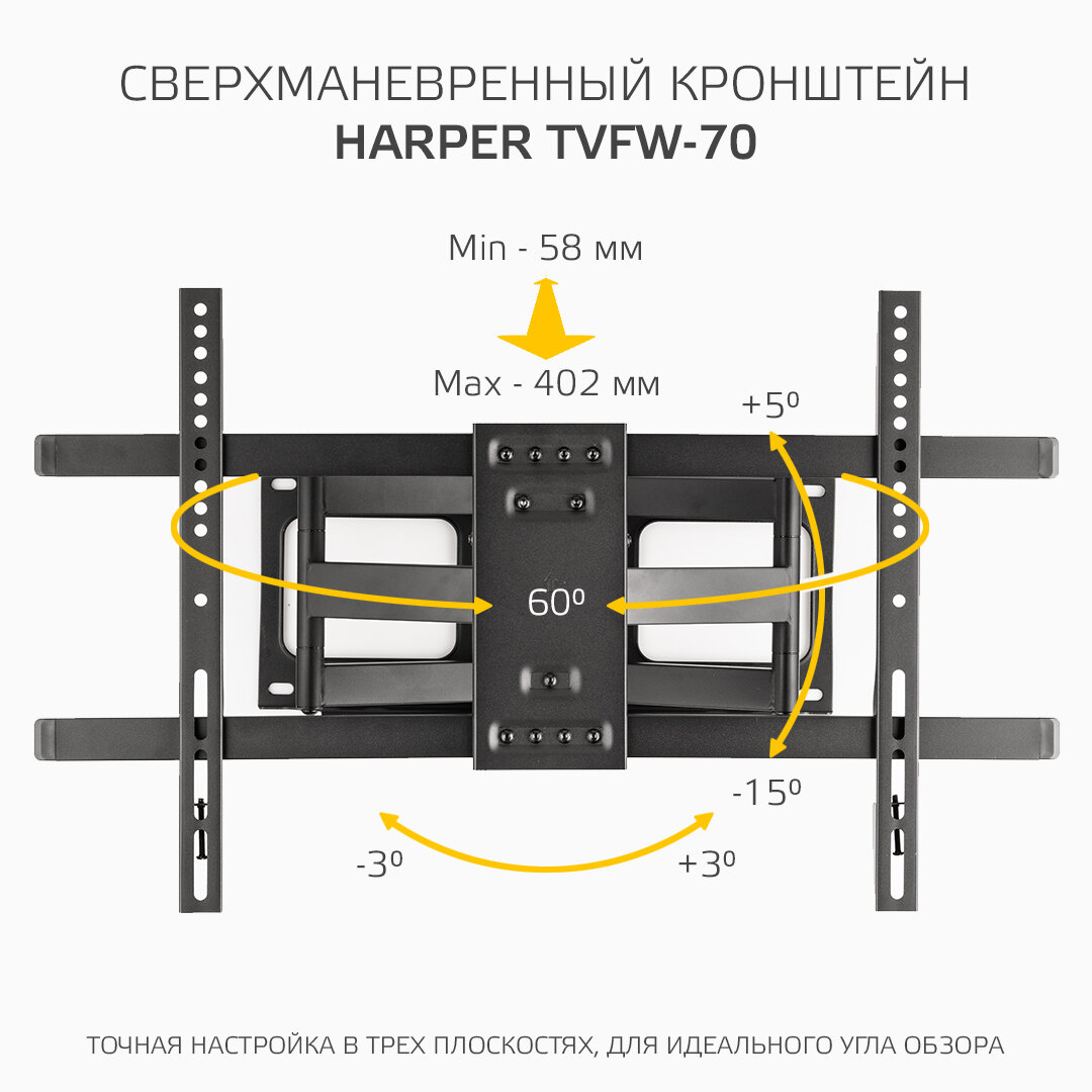 Наклонно-поворотный подвес (кронштейн) для телевизоров HARPER TVFW-70 4 603 ₽