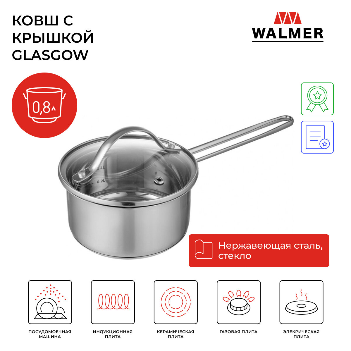 10 цен на Ковш с крышкой Walmer Glasgow, 0.8 л, 12 см, цвет хром