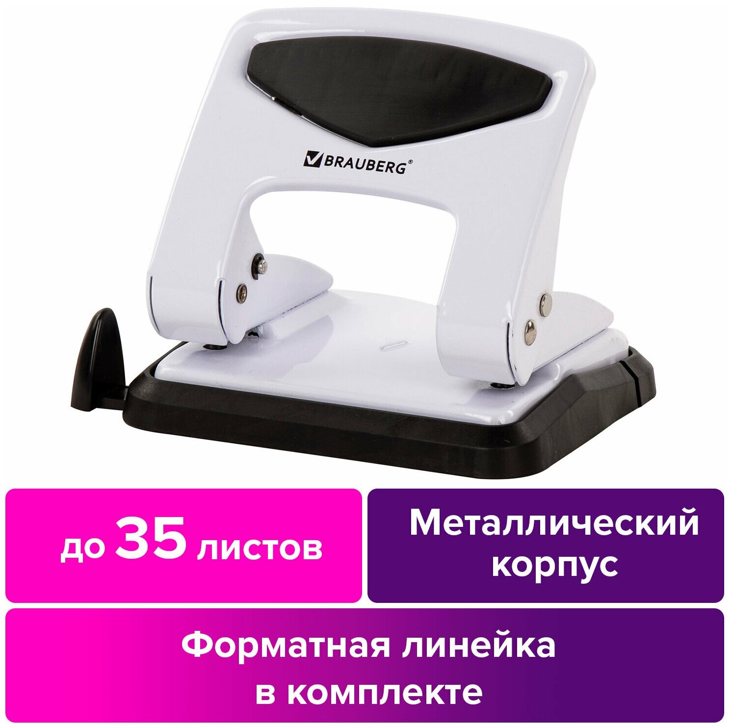 Дырокол BRAUBERG PN-150M 35 листов, 1 шт., белый информация: