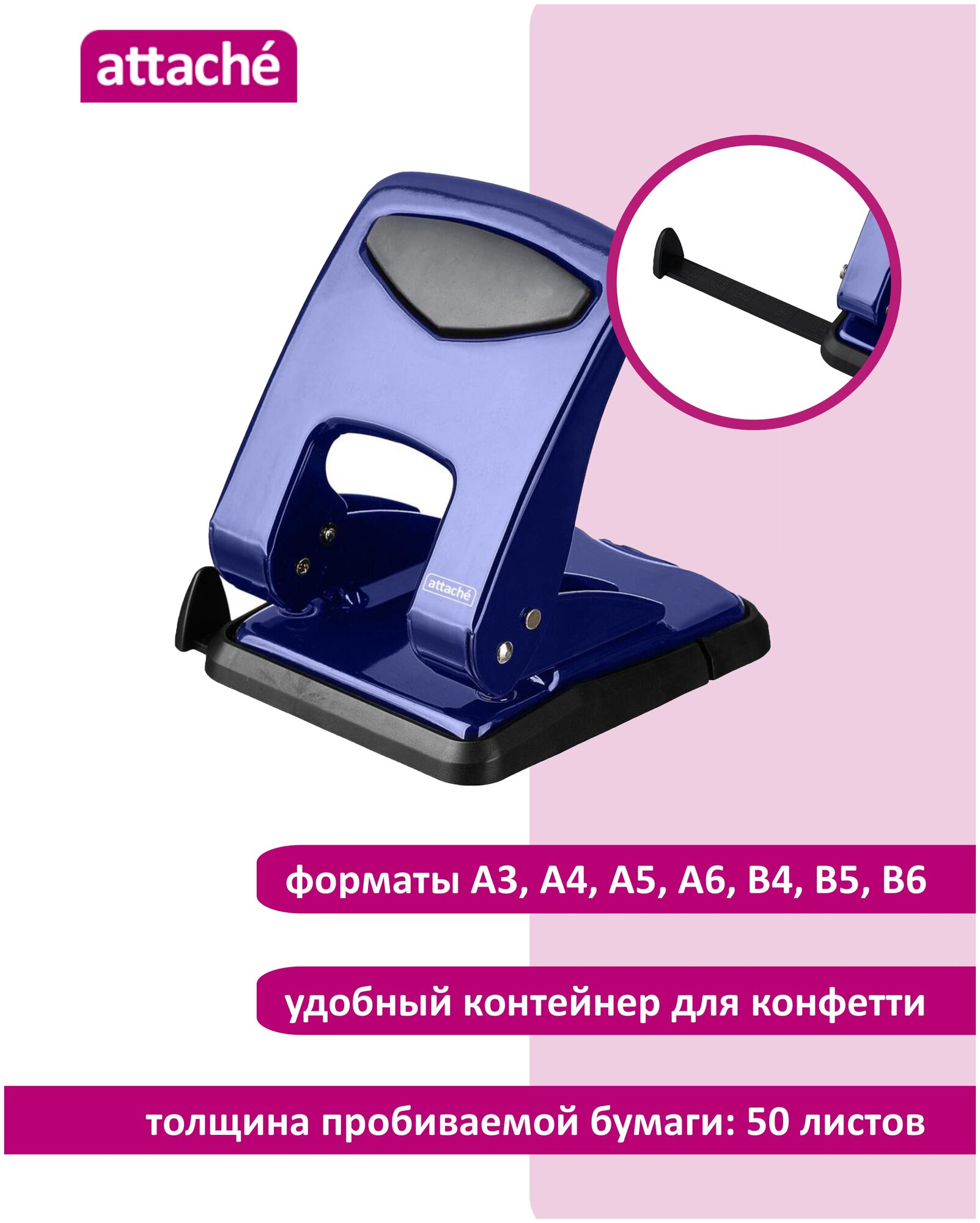 Дырокол Attache до 50 листов, с блокиратором, металлич., синий , 1 шт.