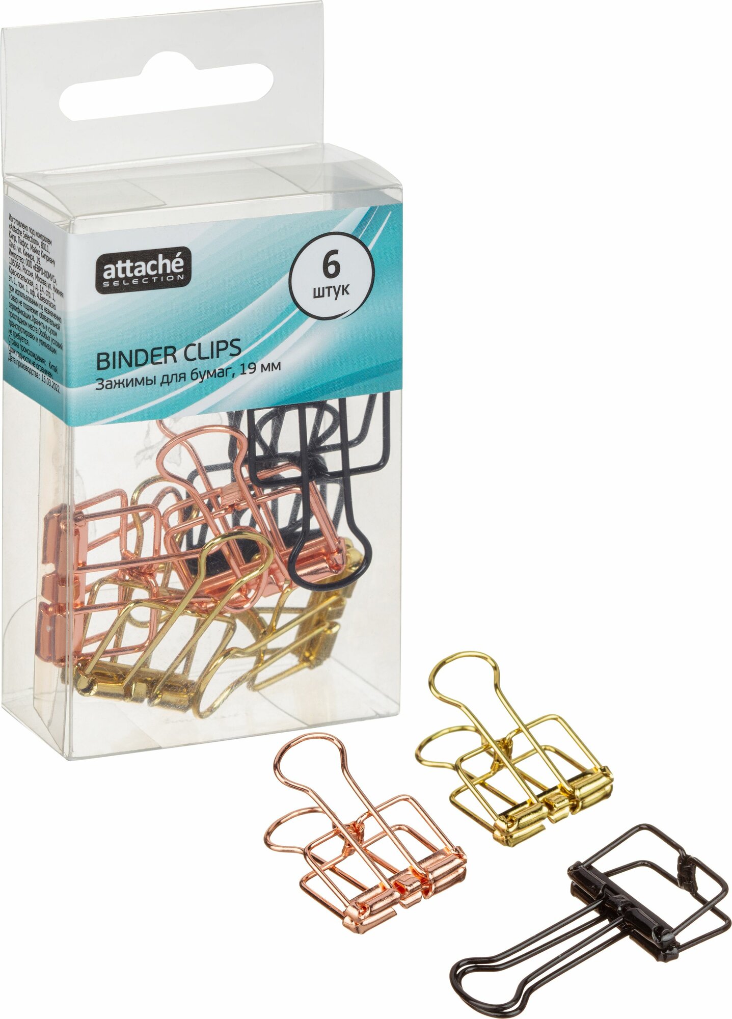 Зажим для бумаг Attache Selection, 19 мм, 6 шт (цвет в ассортименте)