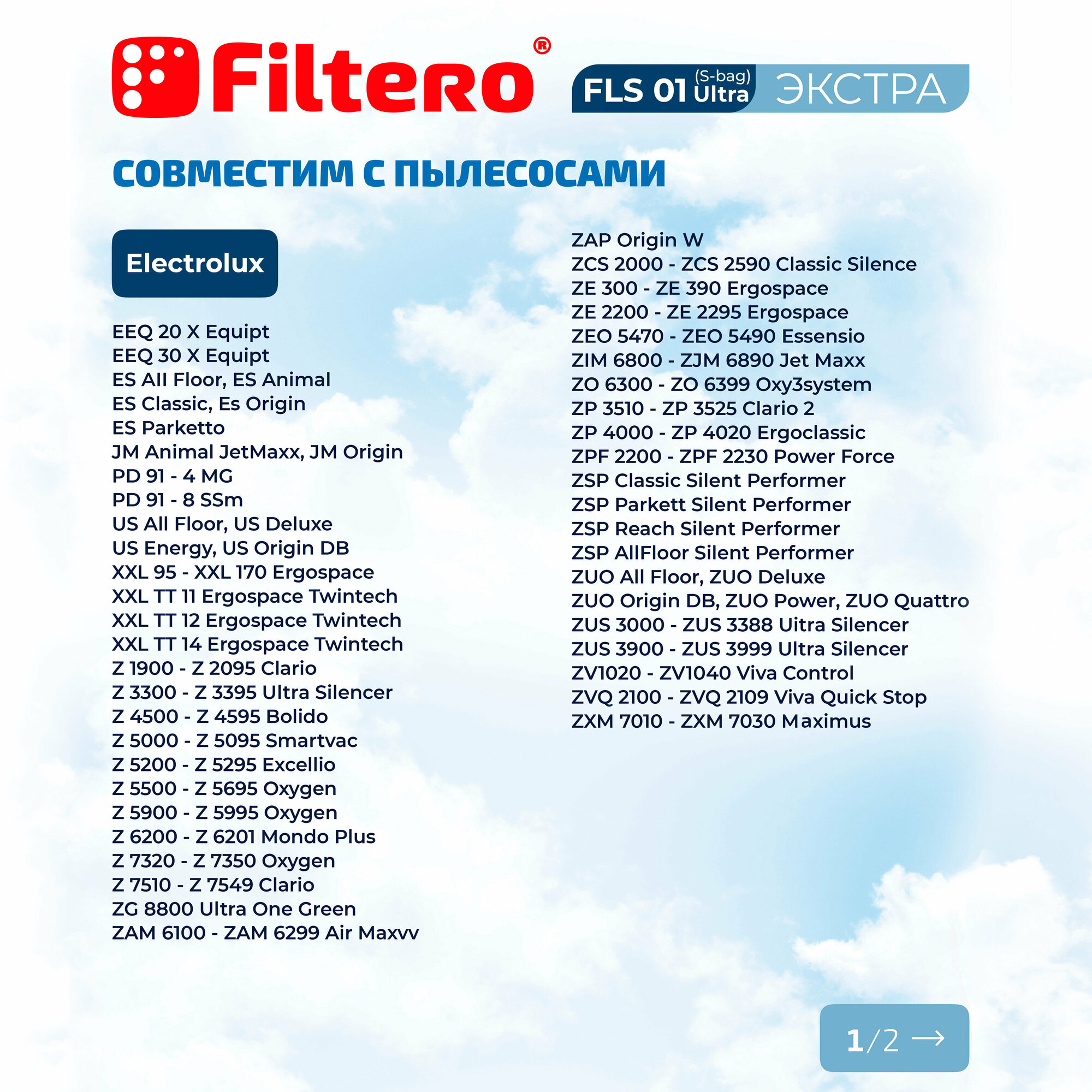 10 цен на Мешки-пылесборники Filtero FLS 01 (S-bag) Ultra Экстра, для Electrolux, Philips, синтетические, 3 шт