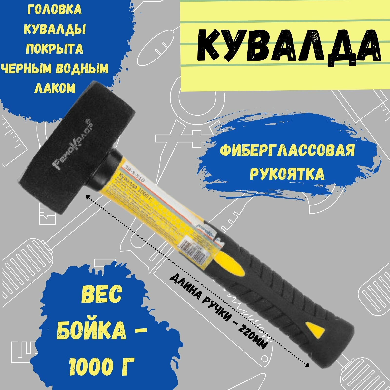 Кувалда с фиберглассовой рукояткой, 1000г, 38-5-510 . информация: