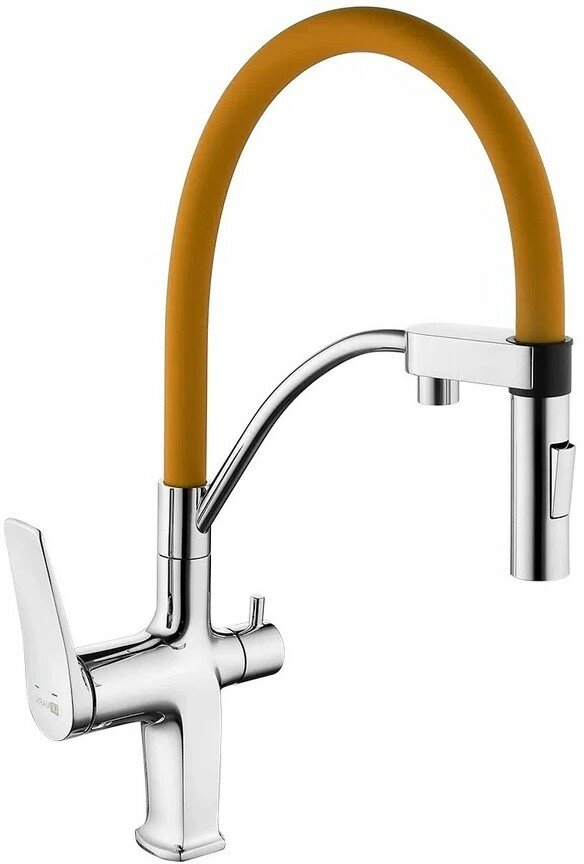 Смеситель для кухни Lemark Comfort с гибким изливом, под фильтр, оранжевый (LM3074C-Orange)