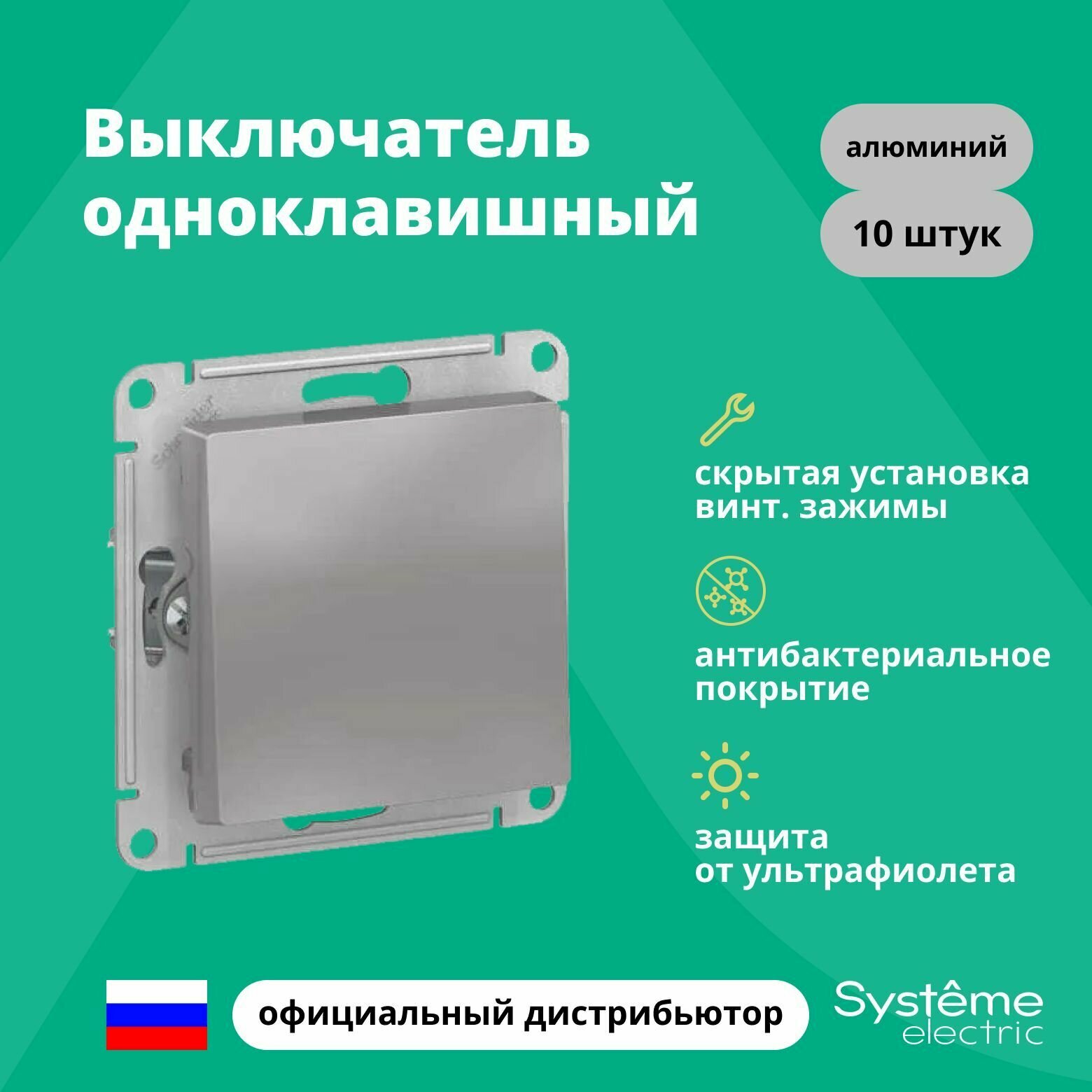 10 цен на Выключатель 1-клавишный ATLASDESIGN, скрытый монтаж, алюминий | код. ATN000311 | Schneider Electric (10шт.в упак.)