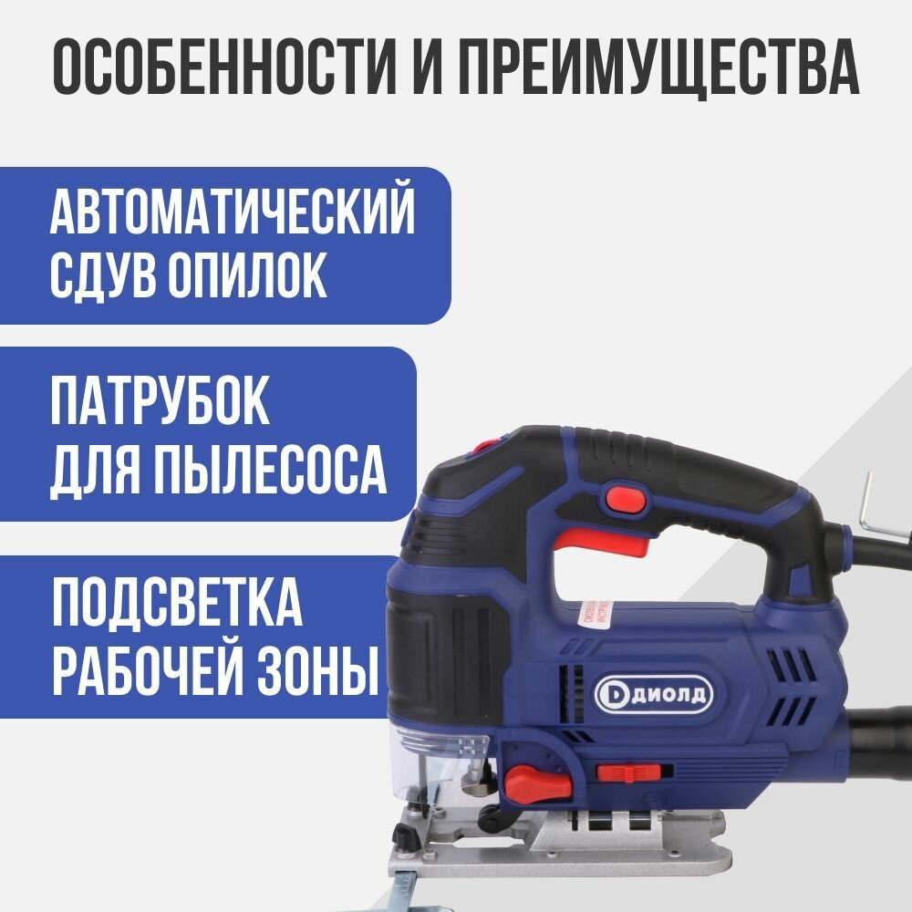 Лобзик электрический диолд ПЛЭ-1-07 М (быстрозажимной механизм), 850Вт,0-3000ход/мин, маятниковый ход, подключение пылесоса, бесключевой зажим, производитель Россия 4 320 ₽