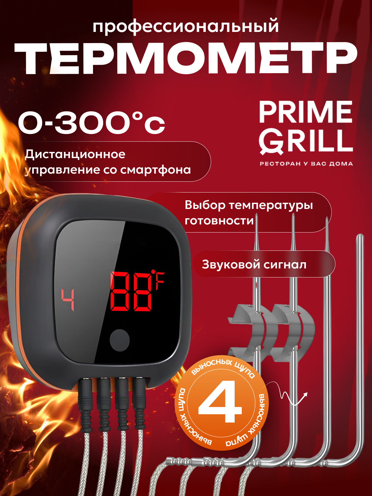 Отзывы на Prime Grill IBT-4XS термощуп, кулинарный термометр, кухонный термометр, термометр для мяса, термощуп для гриля