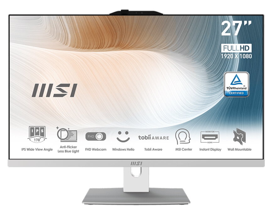 MSI Modern AM272P 12M AiO 27" FHD (1920x1080)IPS AG Non-touch, Core i5-1240P (1.7GHz), 16GB DDR4 (2x8GB), 512GB SSD M.2, Intel UHD, WiFi, BT, camera, WirelessKB&mouse Eng/Rus, NoOS,1y war-ty,White