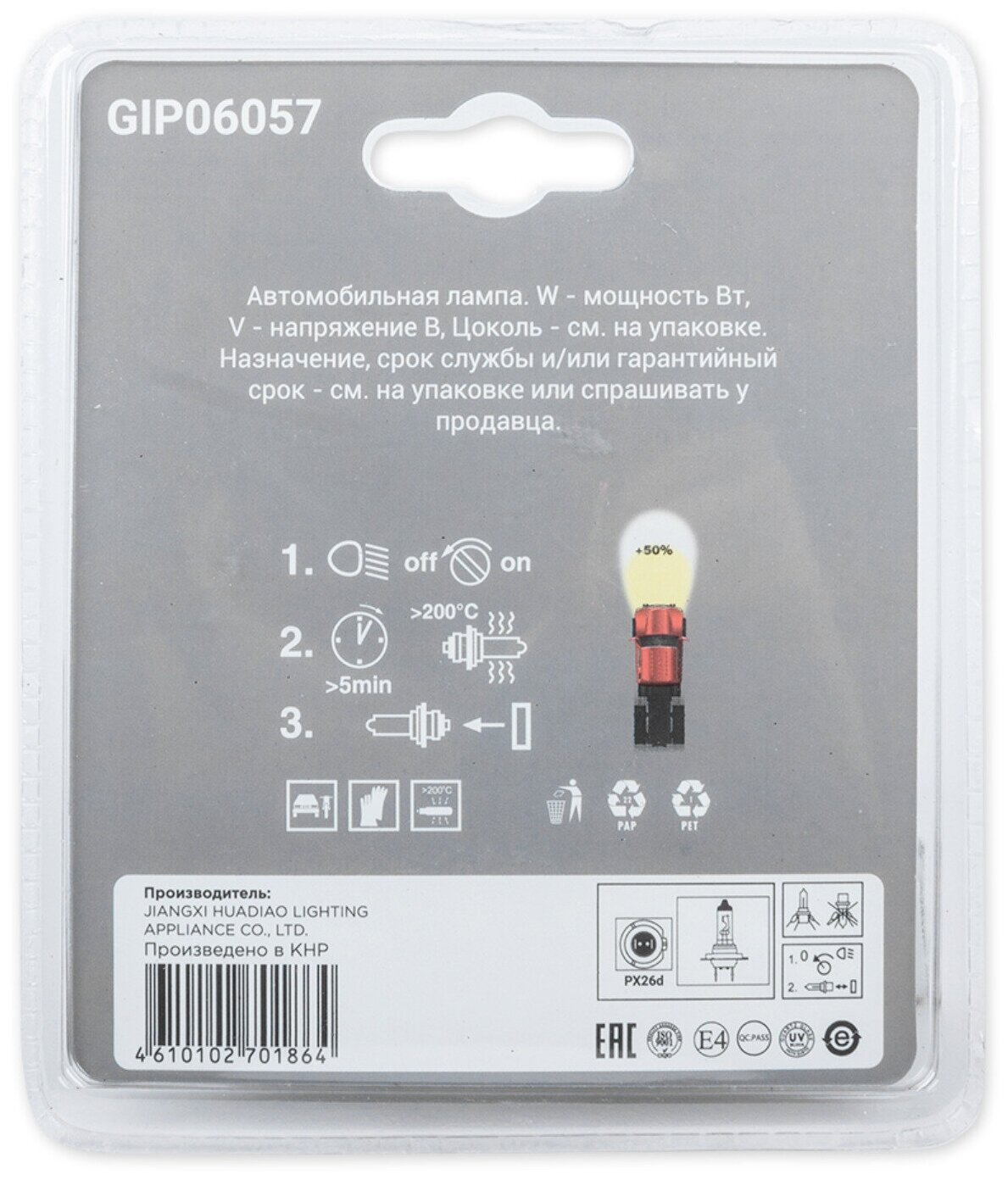 Лампа 12v h7 100w +50 px26d 5000k ganz 2 шт. блистер gip06057, GANZ GIP06057 (1 шт.) информация: