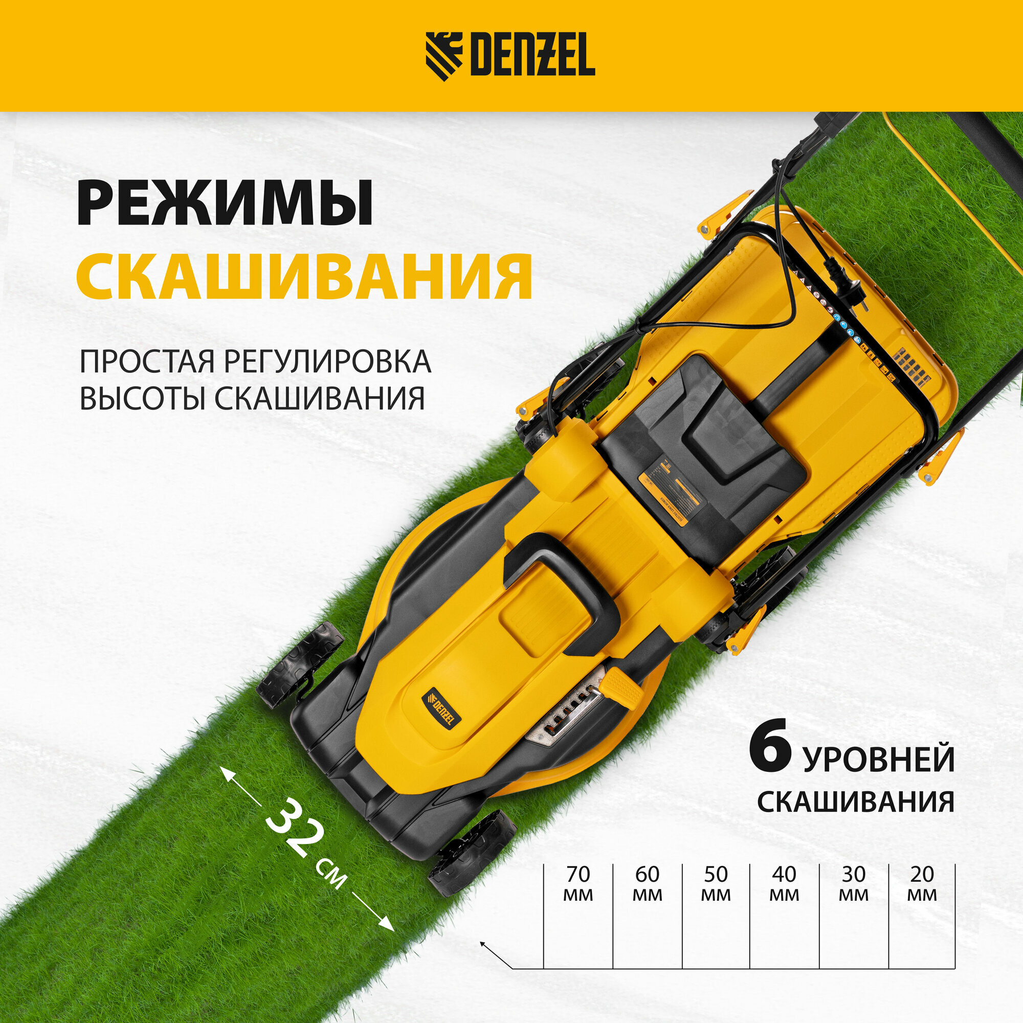 Отзывы на Газонокосилка электрическая Denzel GM-2000 2000 Вт, шир. 43 см, 6 уров., травосб. 45 л. 96618