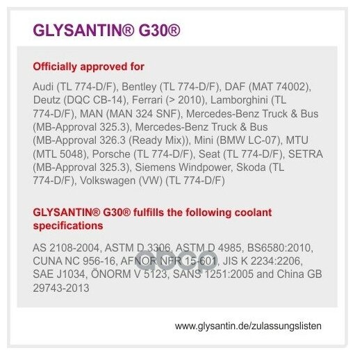 Антифриз Glysantin G30 красно-фиолетовый, готовый, 1кг. 991616 1шт информация:
