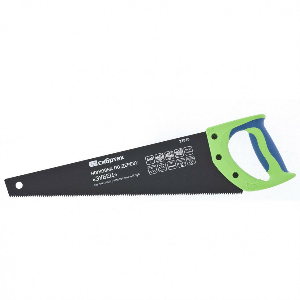 Ножовка по дереву "Зубец", 400 мм, 7-8 TPI, каленый зуб 2D, защитное покрытие, двухкомпонентная рукоятка Сибртех, 23810