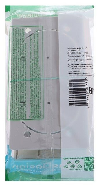 Розетка Schneider Electric AtlasDesign двойная с заземлением белая (комплект из 3 шт)