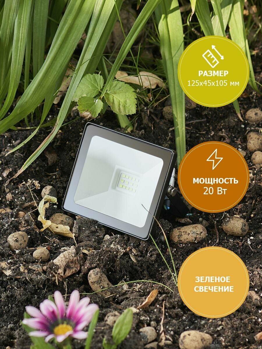 Прожектор светодиодный уличный садовый REXANT 20 Вт с зеленым свечением и площадью освещения до 20 м2 информация: