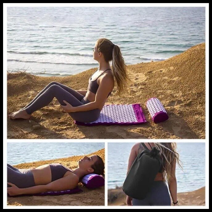 10 цен на Аппликатор Кузнецова Массажный коврик акупунктурный / Игольчатый + подушка + сумка / комплект 3 в1 (розовый)