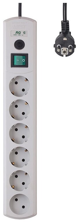 Сетевой фильтр MOST Real RG, 6 розеток, с/з, 10А / 2200 Вт белый 2 м 380 мм 60 мм 50 мм 6