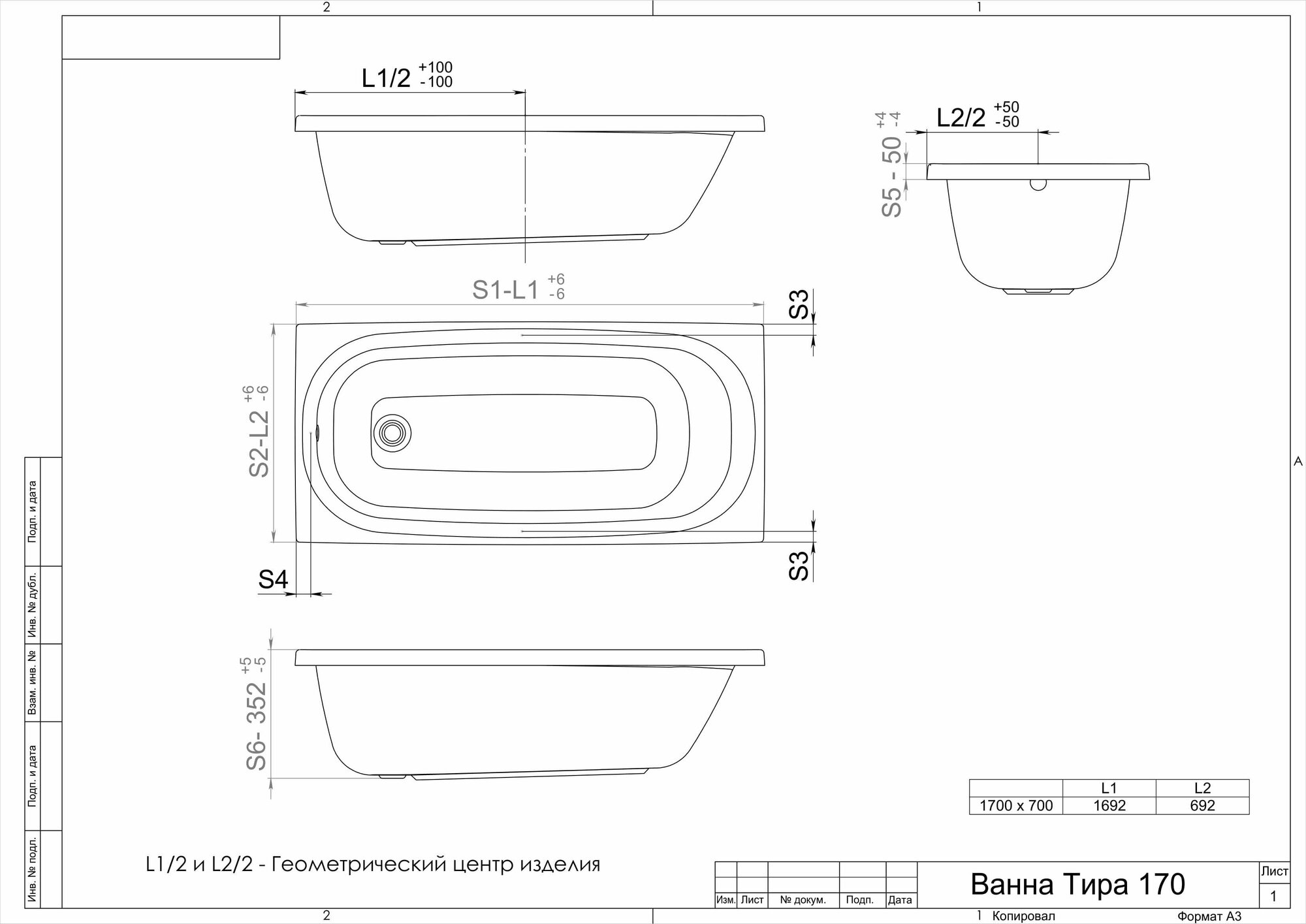 Ванна акриловая Triton Тира 170х70 см без ножек (Щ0000016669) информация:
