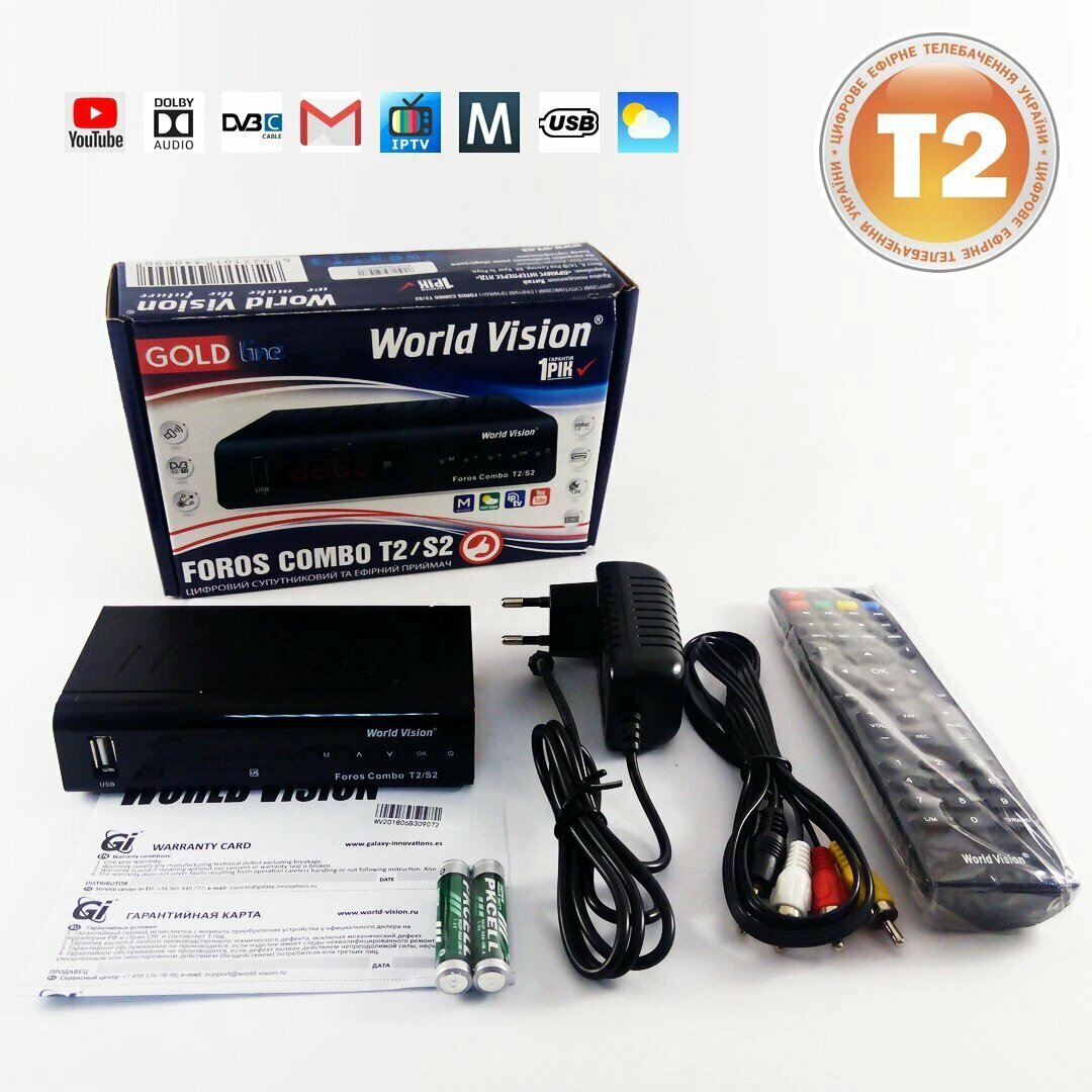10 цен на WORLD VISION FOROS Combo T2/S2/С Цифровой ТВ приемник TV-тюнер ресивер приставка цифрового эфирного телевидения бесплатно 20 каналов DVB-T2 двб т2
