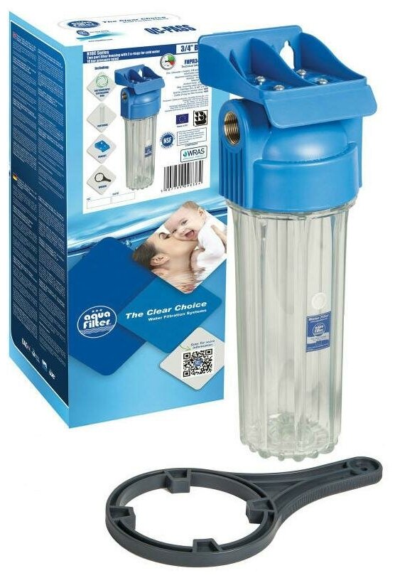 Aquafilter FHPR-B1-AQ (FHPR-HP-WB) Корпус 10" прозрачный на холодную воду с ключом и рамкой (FHPR34-B1-AQ - 3/4")