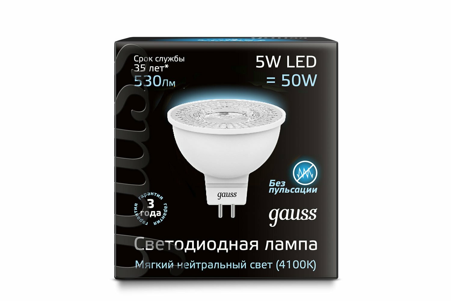 Лампа светодиодная Black 5Вт MR16 софит 4100К нейтр. бел. GU5.3 530лм GAUSS 101505205